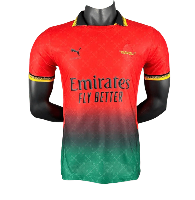 Step into fashion history with the revolutionary AC Milan Off White jersey red from the groundbreaking 2024/25 collaboration - honestly, this isn't just a jersey, it's actually a cultural statement that fuses high fashion with football heritage. As the Number 1 seller of authentic jerseys worldwide, Goatkits Store brings you this exclusive ac milan off white jersey that celebrates the transformative power of dreams through signature Off-White design language. This ac milan jersey represents the first-ever on-field kit designed by Off-White, featuring the iconic red-to-green gradient that pays homage to Pan-African colors celebrating Black excellence during its February Black History Month release.