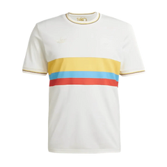 This is honestly one of the most special pieces I've ever seen from Colombian football - this colombia jersey represents 100 years of football history in one beautiful commemorative design. The clean white base with those perfectly placed tricolor stripes across the chest is just stunning, you know? What really gets me about this colombia anniversary jersey is how they've managed to honor a full century of football tradition while creating something that feels completely modern and wearable. The yellow, blue, and red horizontal stripes aren't just decorative - they're a direct tribute to the Colombian flag and represent every generation of players who've worn the national colors. This colombia soccer jersey feels substantial in your hands, with premium construction that tells you this isn't just another regular release. Actually, the attention to detail is incredible - even the collar trim includes special anniversary detailing that references key moments in Colombian football history. At Goatkits Store, collectors have been asking about this colombia 100 year jersey non-stop since we added it to our Special Edition collection.