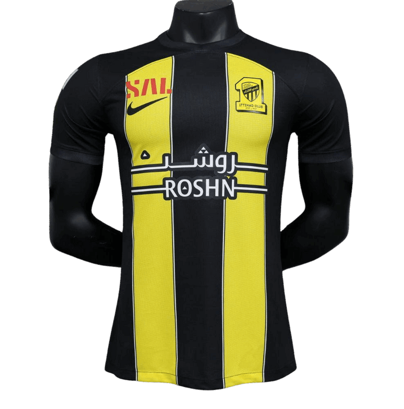 The 23/24 Al Ittihad Home Kit is the perfect choice for any fan of the Saudi Arabian football club, Al Ittihad. This player version kit is designed to replicate the exact look and feel of the kit worn by the players on the field. Made with high-quality materials, this kit is durable and comfortable to wear.