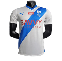 Introducing the latest addition to our collection - the 23/24 Al Hilal Away kit in player version. This innovative kit is designed to elevate your game and make you stand out on the field. Made with high-quality materials, this kit offers maximum comfort and durability, allowing you to perform at your best. The sleek design and vibrant colors of the kit will make you the envy of your teammates and opponents alike.