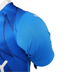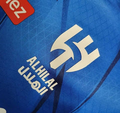 The 23/24 Al Hilal Home Kit is the perfect choice for any fan of the Saudi Arabian football club, Al Hilal. This player version kit is designed with high-quality materials to ensure maximum comfort and durability. The kit includes a jersey, shorts, and socks, all featuring the iconic blue and white colors of Al Hilal. The jersey is made with breathable fabric to keep you cool and dry during intense matches. The shorts have an elastic waistband for a comfortable fit, and the socks have cushioned footbeds for added support.