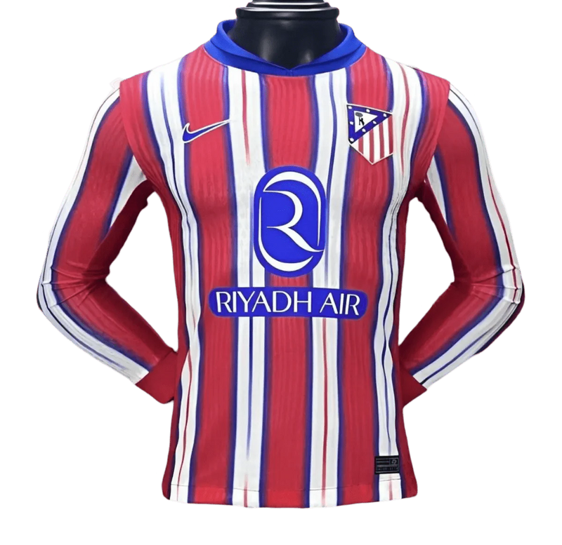 The 2024/2025 Atlético Madrid Long Sleeves Home Kit combines the club's iconic design with added functionality for colder weather. Its long sleeves make it an excellent choice for fans looking for extra warmth while maintaining Atlético Madrid's bold aesthetic.
