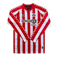 Show your unwavering support for Sunderland AFC with the official 24/25 Sunderland Long Sleeves Home Kit, available exclusively at Goatkits Store. Combining the iconic red-and-white stripes with a long sleeve design, this jersey is perfect for cooler match days or adding timeless style to your collection. Represent the Black Cats with pride and comfort!