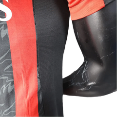 The ULTRAWEAVE fabric feels incredible - it's substantially lighter than the fan version and has this smooth finish that actually helps with aerodynamics during movement. The monochrome crest is crisp white and creates striking contrast against both red and black stripes.