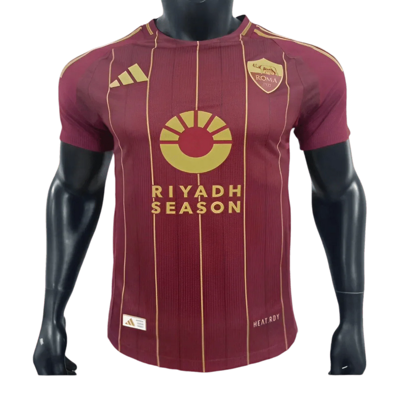 The AS Roma home jersey 2024/25 Player Version features professional-grade construction with ultra-lightweight fabric, athletic compression fit, heat-applied logos, and advanced HEAT.RDY moisture-wicking technology. Unlike Fan Versions, this Roma home jersey provides identical performance technology to professional match-worn jerseys, with enhanced durability and specialized athletic features for serious players and collectors seeking authentic professional quality.