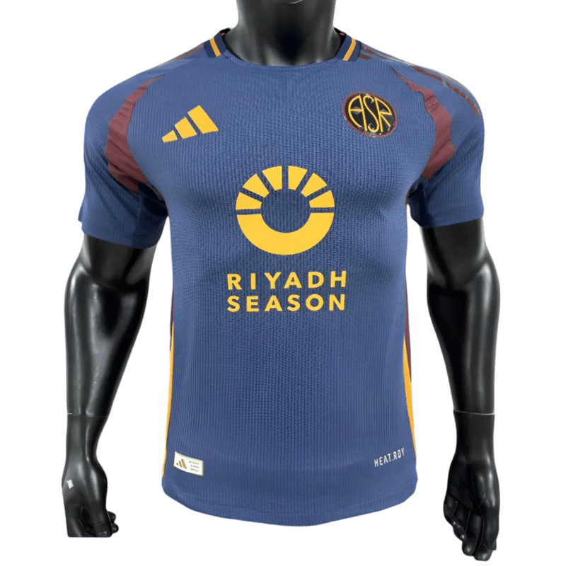 The AS Roma Third Jersey 2024/2025 Player Version showcases the distinctive Tech Indigo navy blue colorway with the iconic ASR monogram, celebrating Roma's connection to the historic Testaccio neighborhood and engineered with professional-grade construction for elite performance. This AS Roma third jersey represents Roma's first navy shirt since the 2020-21 season, combining heritage storytelling with advanced athletic technology and HEAT.RDY performance fabric designed for serious players and collectors.