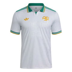 The AS Roma Third Kit 2025/2026 Fan Version represents a historic milestone as the first white third kit in Roma's history, featuring an innovative botanical design inspired by Roman villas and Italian gardens. This AS Roma third kit combines comfortable fan version construction with the prestigious Trefoil logo, celebrating Roma's elevation to elite team status while showcasing the distinctive white, green, and yellow colorway that defines this groundbreaking jersey.