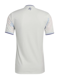 The Aston Villa Jersey – 2025/2026 Third Fan Version takes a different direction from the usual claret and blue. This version comes in a soft off-white base with light blue details across the shoulders, collar and sponsor. The crest is placed clearly on the chest, while subtle tonal graphics appear near the lower part of the shirt, adding depth without making the design busy. The overall look is clean and lighter in tone, giving this aston villa third kit 25/26 a fresh identity compared to the home and away editions. It is a fan version made for everyday wear, not a tight on-pitch fit.