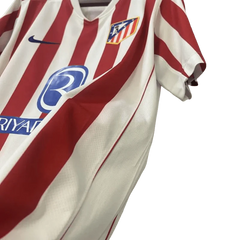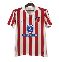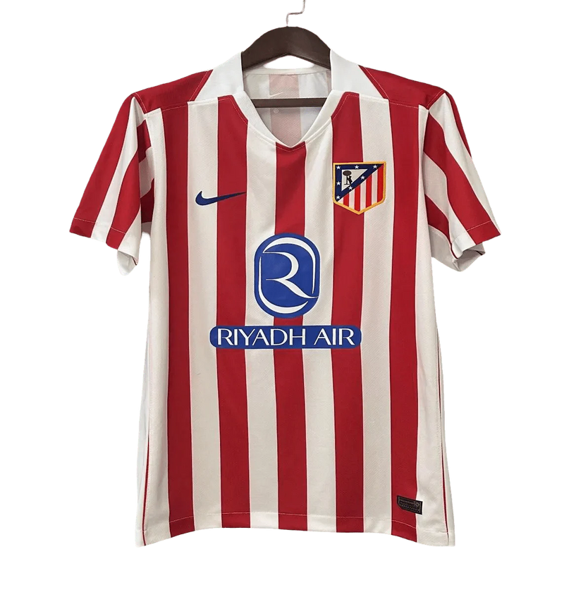 This Atletico Madrid home jersey for the 2025/2026 season keeps things simple and true to the club’s identity. You have the classic red and white vertical stripes from top to bottom, the look that defines Atletico every year. The blue “Riyadh Air” sponsor sits at the center of the chest and adds contrast against the stripes, while the club crest is placed on the left side, exactly where supporters expect it. The collar is clean and straightforward, without extra details, which keeps the focus on the traditional striped design. This is the fan version, made for everyday wear rather than a tight, match-ready fit.