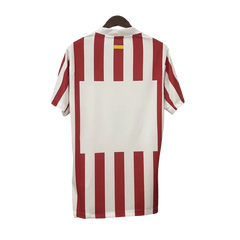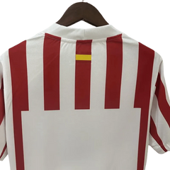 The fabric has a smooth finish, and the red and white colors are clear and well separated. The sponsor and crest are applied cleanly without making the shirt feel heavy. The stitching along the shoulders and sleeves is neat and solid, built to handle regular use. Overall, the shirt keeps a clean and balanced look without unnecessary extras.