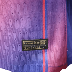 The material is thin and smooth, built to stay lightweight during movement. The red and blue transition is integrated into the fabric itself, keeping the surface clean and even. Seams are flat and discreet so the shirt sits comfortably against the skin. The sponsor and crest remain clearly defined against the darker tones, without adding stiffness to the fabric.