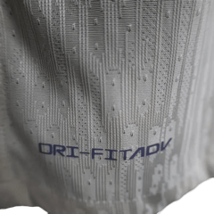 This away jersey barcelona player version has a tighter, more defined silhouette. The sleeves sit slightly closer to the arms, and the torso feels more contoured compared to the relaxed fan edition. The neckline keeps its shape and adds to the structured look. Overall, it feels more technical and match-focused than casual.