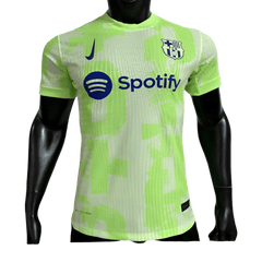 The Barcelona third kit 24/25 is unique because it features a revolutionary vibrant green colorway that completely departs from Barcelona's traditional blue and red colors. This Barcelona third jersey Player Version showcases bold design innovation with tonal patterns, professional-grade construction, and distinctive visual appeal that makes it the most striking Barcelona jersey of the season.
