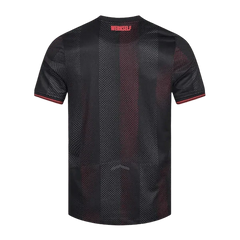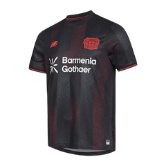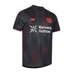 This bayer leverkusen jersey home kit honestly represents something revolutionary about New Balance's Bundesliga debut with its elegant black and red design featuring subtle elongated crosses throughout. The leverkusen jersey pays tribute to Leverkusen's roots through the iconic Bayer Cross, you know, that symbol deeply rooted in the city's ties to science and medicine that defines the community's identity. I mean, when you examine the dotted gradient pattern closely, those small crosses in white and red create this incredible textured depth across the jet-black base - it's actually quite sophisticated how they've reinterpreted the traditional alternating stripes. Plus, this marks the end of Castore's three-year partnership and introduces New Balance's NB DRYx technology for the first time in German football at Goatkits Store.