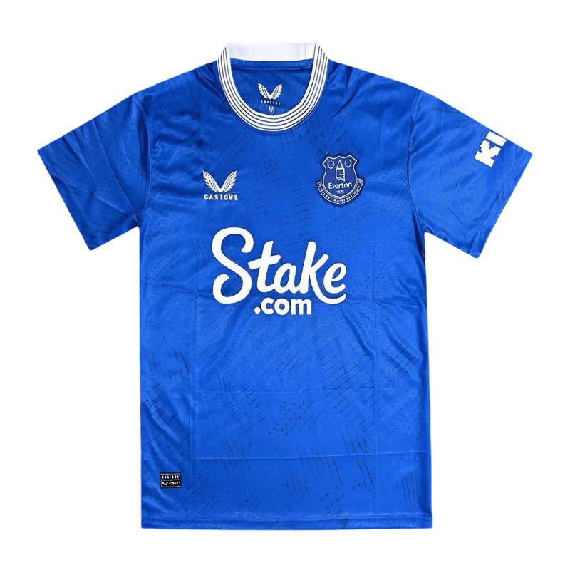 The everton kit 24/25 features an exclusive abstract representation of Everton's first official crest from 1920, with deconstructed EFC letters embossed throughout the fabric. This design celebrates 'The Originals' heritage while marking Goodison Park's final season, making it the most historically meaningful everton home kit in decades. The 1920 crest reference connects supporters with the club's foundational era and rich football heritage.