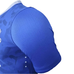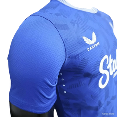 The everton kit 24/25 player version features exclusive Aertek-textured fabric technology with ultra-lightweight construction, raised silicone heat-sealed graphics, and laser-cut ventilation designed for peak athletic performance. This professional-grade everton home kit offers enhanced moisture-wicking, superior durability, and athletic fit specifications identical to what first team players wear during Premier League matches, making it significantly more advanced than standard replica versions.