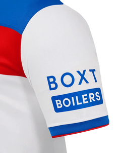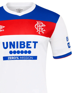This Rangers third kit complements a stunning away design that embodies everything about Rangers' fighting spirit on the road. The kit utilizes the club's classic red, white, and blue color palette in a stylish arrangement that's both modern and respectful of tradition.