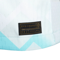 Looking at this masterpiece, you immediately appreciate the sophisticated approach to away kit design. The pristine white base serves as a canvas for intricate blue and turquoise geometric patterns that create an abstract interpretation of snowflakes, perfectly reflecting Milan's role as co-host of the 2026 Winter Olympics alongside Cortina.