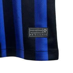 Examining this Inter Milan home kit 2025/26, what strikes you immediately is how Nike completely reimagined the classic Nerazzurri stripes. At first glance, it looks like traditional black and blue stripes, but when you look closer - and I mean really look - the black stripes actually spell out 'INTER' in this subtle, almost hidden way. It's pretty clever how they integrated the club name directly into the stripe pattern itself. This Inter Milan kit 25 26 fan version gives you that comfortable relaxed fit that's perfect for match days at San Siro or casual wear around Milan. Plus those turquoise blue logos are completely new - first time Inter's used that color on the crest and Nike swoosh, which gives the whole shirt a fresh modern look while keeping that classic Nerazzurri identity. Available at Goatkits Store with up to 70% OFF limited time offers.