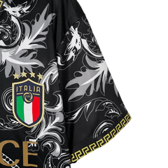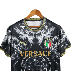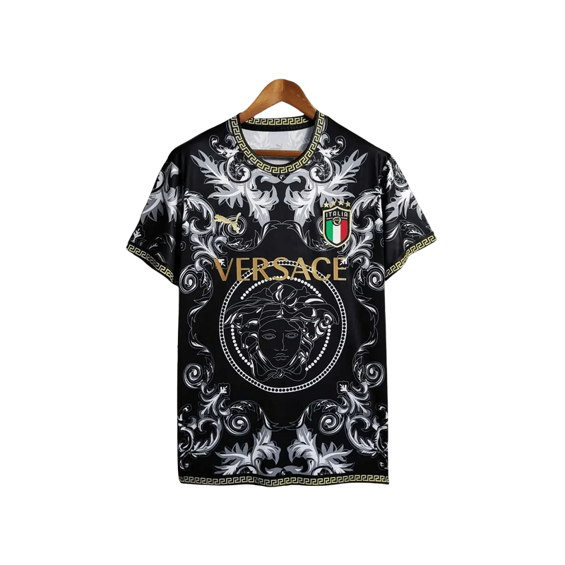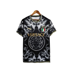 The Italy Versace jersey black special kit combines premium Italian football heritage with Versace's luxury fashion expertise in a sophisticated black palette, featuring exclusive design details, premium materials, and sophisticated aesthetic elements not found in standard jerseys.