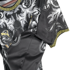 This Italy Versace jersey black special kit immediately commands attention with its sophisticated elegance that somehow manages to be both understated and striking at the same time. The versace italy jersey in black represents a special collaboration that feels substantial and luxurious in your hands. What catches your eye first is how the deep black colorway serves as the perfect canvas for Versace's design elements, creating this special kit that's both timeless and distinctly modern.