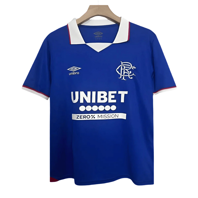 The fan version gives you that perfect supporter comfort with regular fit that's ideal for match days at Ibrox or celebrating with fellow Bears. This new Rangers kit features authentic Umbro quality with UNIBET Zero% Mission sponsorship, classic white cuffs with subtle red trim, and the traditional Rangers scroll crest. Available at Goatkits Store with our signature jersey size calculator for perfect fit.