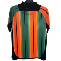 This Venezia third kit for the 2025/2026 season is not subtle — and that’s exactly the point. The front mixes bold vertical stripes in deep green and bright orange, with dark side panels that frame the whole design. The colors run straight down the shirt, giving it a strong visual rhythm. The Venezia crest sits centered high on the chest, keeping the focus balanced despite the striking pattern. If you’re looking for a venezia third jersey that stands out immediately, this one does it without hesitation.